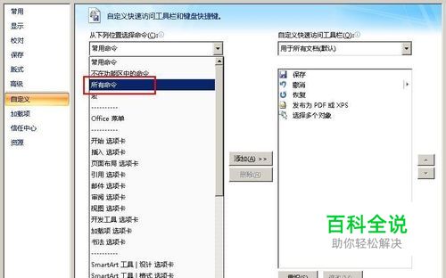 在所有命令中,找到“减少一页”的选项,点击它,然后点击添加