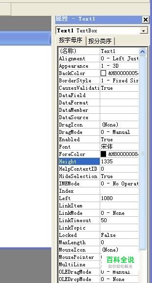 然后是给这个工程编写程序 Private Sub h1_Change() Text1.Width = h1.Value (文本框的宽度等于水平滚动条的 value值) End Sub Private Sub v1_Change() Text1.Height = v1.Value (文本框的高度等于垂直滚动条的 value值) End Sub 如图