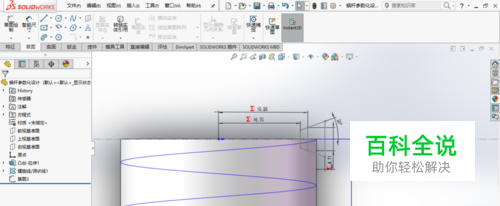 创建螺旋线: 圆柱端面创建草图,转换实体引用; 插入螺旋线,注意方式选择“螺距和高度”,单击确定。