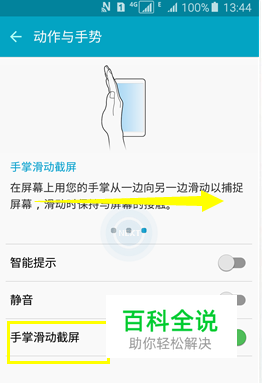 方法三:在设置动作与手势中选择开启滑动截屏,直接手掌滑屏截屏按钮,如下图所示