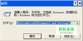 在“运行”的文本框中输入“%SystemDrive%\Documents and Settings”,并单击“确定”按钮: