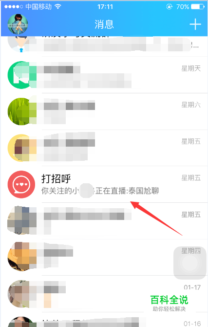 进入“打招呼”功能后,就可以看到该直播的具体通知消息内容,点击进入,如图所示。