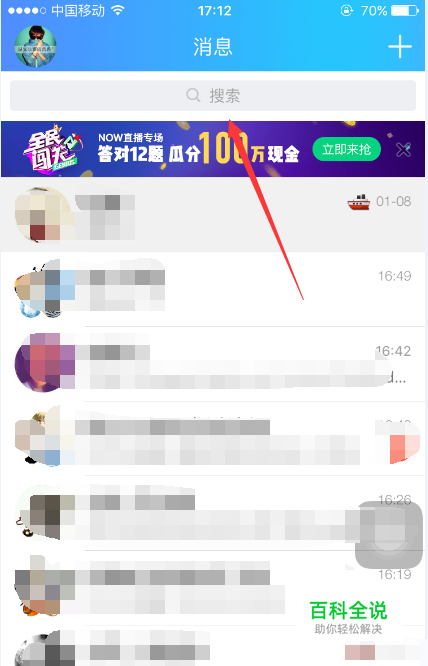 或者找到qq聊天首页的上面的搜索框,如图所示。