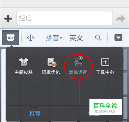 打开百度输入法,点击左上角的du图标,进入百度手机输入法的菜单选项。