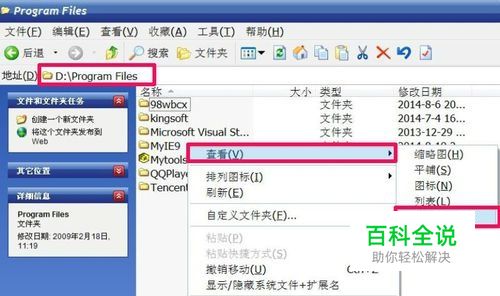 2,而有的文件夹的查看模式为“详细列表”,如果下图中的D:\Program Files这个文件夹。