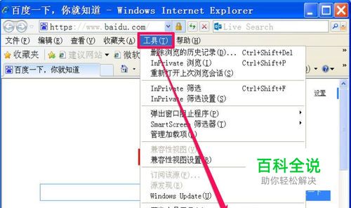 如果设置了IE代理,经常会引起其它浏览器上不了网的情况,这时,就要取消代理设置,取消方法,先打开IE浏览器,选择“工具”菜单,然后再选择“Internet 选项”。