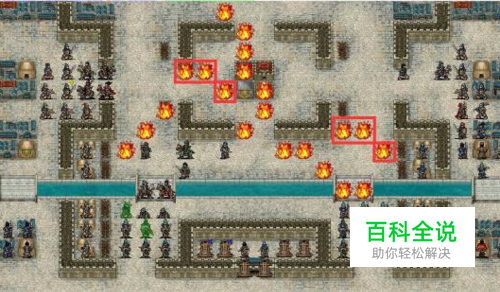 东、西两路的原则是:不要卡门!也就是要进入内城中与敌人交战,如果卡门的话火势会在消灭敌人之前蔓延到门前,火烧到的地方的我军会直接撤退。火的蔓延规律: