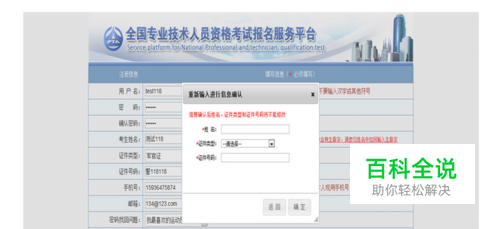 二、系统功能介绍 2.1. 考生注册 2.1.1. 注册帐号 进入网报界面,点击【注册】,屏幕显示注册协议,阅读完毕,点击【接受】,屏幕显示注册须知,阅读完毕后,点击【下一步】,进入注册信息录入界面(见下图),其中带*号的是必填项;证件号码,可以选择使用身份证、军官证、护照或港澳台居民身份证进行注册。其中一定要牢记邮箱和密码找回问题,以便找回密码。 填写完毕确认无误后点击【提交】,出现信息确认,需要考生重新输入姓名、证件号码进行确认。如下图所示: