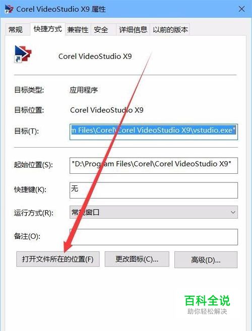 在弹出的属性窗口中,点击“打开文件所在的位置”