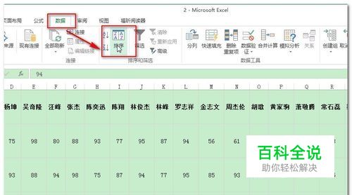 选定除首列以外的数据区域(为什么要这样选择,后面会有详细的说明)。依次点击【数据】-【排序】