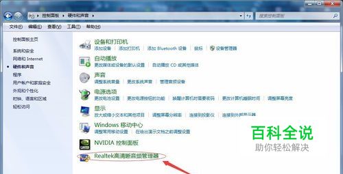 首先要打开声音管理器,方法:开始—控制面板—硬件和声音—Realtek高清晰音频管理器
