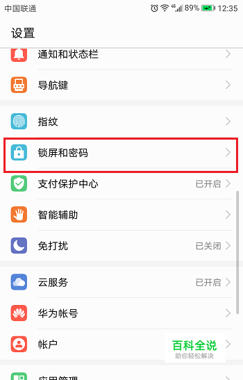 第二步进去手机设置界面之后,点击锁屏和密码,如下图所示: