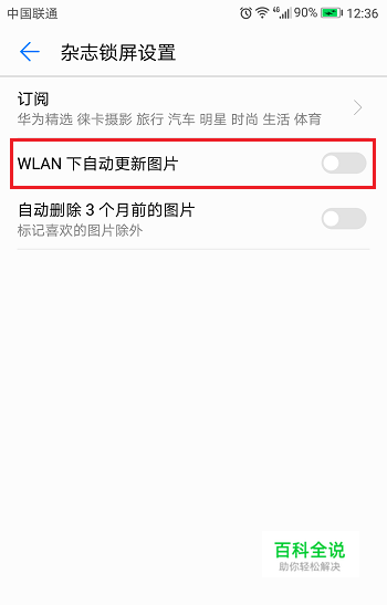 第四步进去杂志锁屏设置界面之后,可以看到WLAN下自动更新图片默认是开启的,如下图所示: