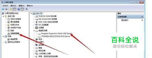 首先右键点击我的电脑→管理→设备管理→磁盘驱动器→Seagate Expansion Desk USB Device,右键,点击卸载。