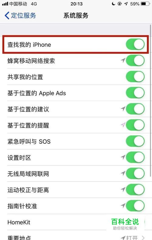 如图所示,最后点击开启查找我的iPhone开关就可以了。