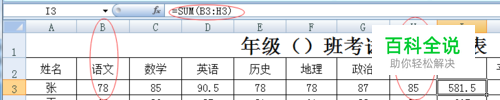 总分:在第一个人的总分处输入:“=sum(B3:H3)”sum是“求和”的意思,表示第3行第B列到第3行第H列的所有数加起来。那么表格中I3的数算完了,这就是张同学的总成绩。把鼠标放到I3单元格的右下方,出现黑色“+”时往下拉到表格有数字区域的末端,这样所有的同学各自的总分就确定了。