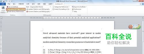 点击word菜单栏中的Endnote选项,接着选择edit & manager citation(s)这个选项