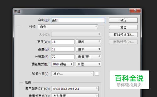 Ctrl + N 新建一个文件:16 x 12 cm、72像素/英寸、RGB模式、白色背景。如图所示: