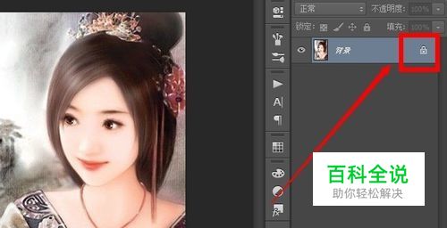 打开照片后,它的图层是被锁住的,所有我们要双击图层上的锁