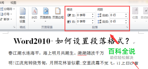 word2010 如何设置段落格式?
