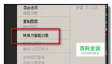 PS中,在图层面板这里,鼠标右击图层,弹出的菜单中,会有这么一个选项:转换为智能对象
