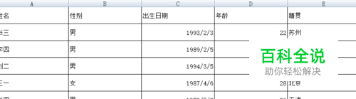 在 这里一定强调出生日期的时间设置一定要为斜线格式,如果为其他格式,小编的系统就出现了错误,虽然输入的公式上上边一模一样。