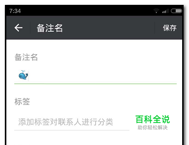 转到另一页面,然后,下图中红框内输入备注名称,比如;莹莹; 然后,点页面右上角的”保存“;