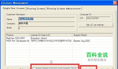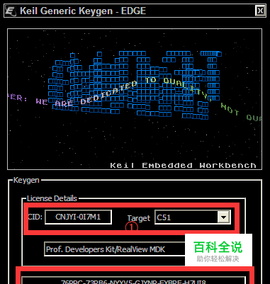 然后找到CID,复制CID里面的码值,复制到注册机。然后点击"Generate",获取到注册编号。根据下图五步完成注册Keil C51 。Keil MDK 注册方法也是一样的。