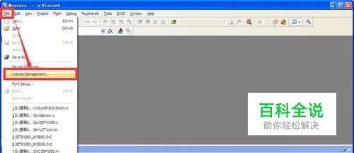 在桌面找到“Keil uVision4”双击,打开软件。找到“License Management”然后点击打开注册页面。