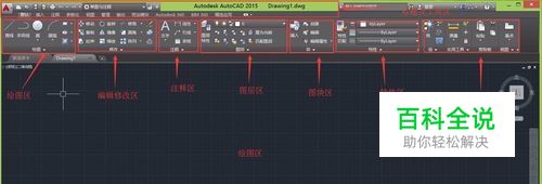 操作界面的熟悉,在这个界面上主要的部分有:标题行,菜单,绘图区,命令窗口,状态栏,绘图工具,编辑工具,坐标系等组成,如图所示: