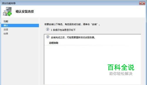 在添加功能向导窗口,在功能对话框中拉到底部勾选【远程协助】,点击下一步。