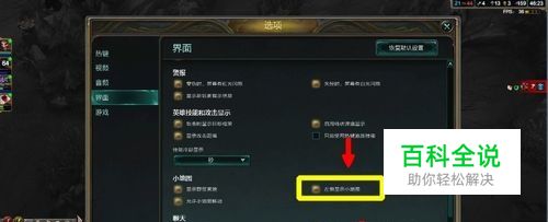 同样是 点击键盘“Esc”键就会弹出如图画面,然后点击“界面”找到小地图,如图,羽儿这里是没设置的,所那个方框是空的。