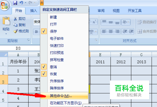 单击之后会下拉很多选项供我们选择,此时我们单击“其他命令”按钮。