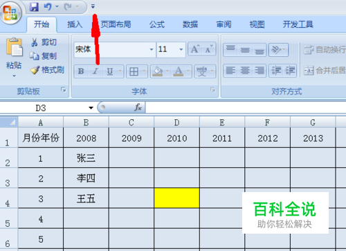 如果我们在第一步操作的时候没有看到有小倒三角形的话,那么我们可以单击左上角的office图标,如图所示箭头所指的图标。