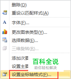 同样的方法,选中横坐标轴上的数据,鼠标右键,单击“设置坐标轴格式”
