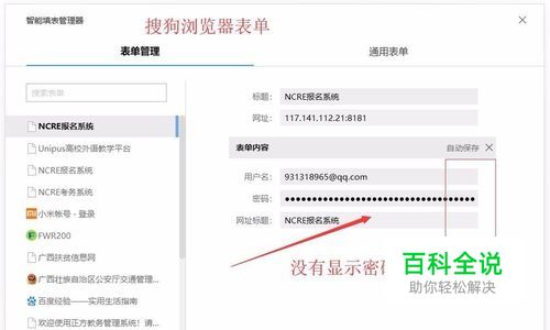 本人的许多网站密码都自动保存在了搜狗浏览器里面,每次都能自动登录,但自己却忘了密码是什么,时间一长连我自己都不记得密码...这种感觉很难受,该怎么解决呢?