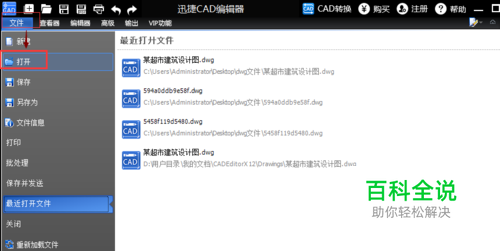 在“打开”窗口中选择绘制好带有文字的CAD图纸,点击“打开”,就能把CAD图纸添加到CAD编辑软件中了。