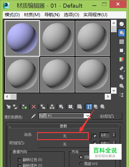 点击法线凹凸选项后在设置里找到法线后的无按钮,如图所示:
