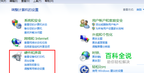 首先打开我们的控制面板——硬件和声音选项。