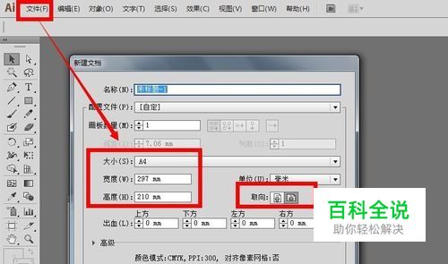 打开ai软件,点击文件——新建,先设置自己的画布的名称、大小,方向,然后点击确定