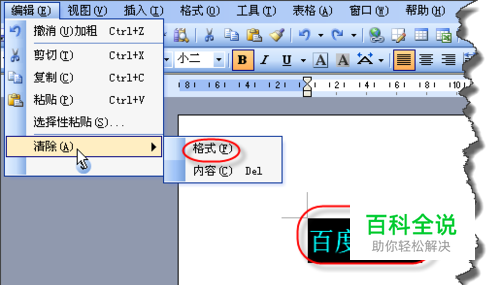 方法一:选择文本,在“编辑”菜单下点击“清除”菜单,选择“格式”