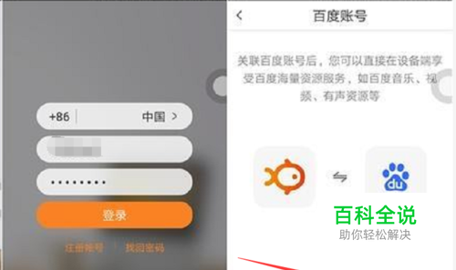 首先将音箱连接电源,会在显示屏中看到二维码的。 登陆新注册的账号,然后提示需要关联百度账号,点击【关联账号】,再输入你的百度账号即可。