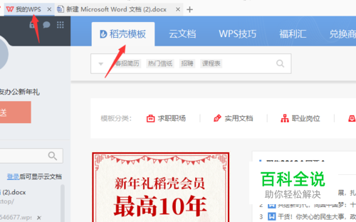 选择“我的WPS",依次找到“稻壳模板”。如图:
