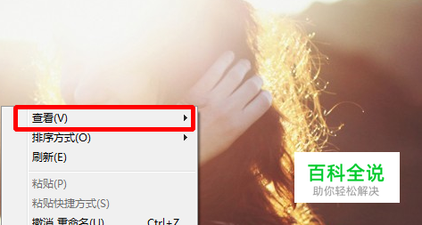 将鼠标放在查看上,看看“显示桌面图标”这一项是否勾选,如果没有勾选,那么请点击勾选。