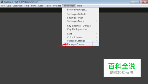 打开sublime text2 ,点击preferences找到package control.如图:
