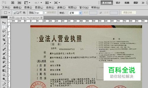 1、鼠标单击左侧的工具栏中的放大镜工具将刚拖入Photoshop中的图片A放大200%。