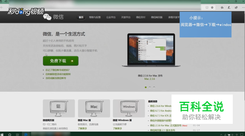 打开浏览器,输入“微信”,“搜索”,进入微信官网。