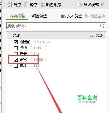 就可以看到冻结的数量和正常的数量,如果只想显示正常状态的,就只勾选正常,然后确定