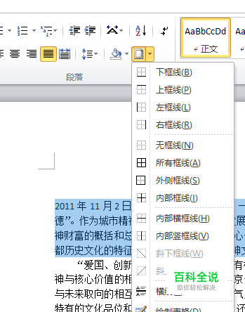 在段落进行设置 选择边框与底纹