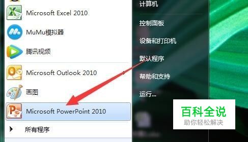 首先,在电脑中点击开始按钮,点击Microsoft PowerPoint打开。